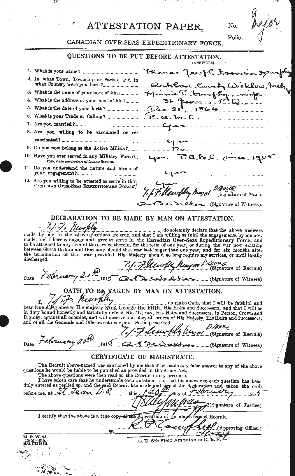 14601-25 Arthur Payne MURPHY, 21, chemist, Halifax, London, s/o Thomas Joseph Francis MURPHY, b. Ireland & Mary Silver PAYNE, married Vivian E. ELLIS, 20, St. John NB, Toronto, d/o William John ELLIS, b. Ontario & Pearl Augusta JAMIESON, witn: T.J.F. MURPHY & Mary Payne MURPHY, both of London, 4 Jun 1925 at London.”