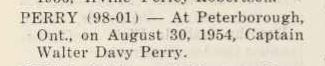 PERRY (98-01) – At Peterborough, Ont., on August 30, 1954, Captain Walter Davy Perry.