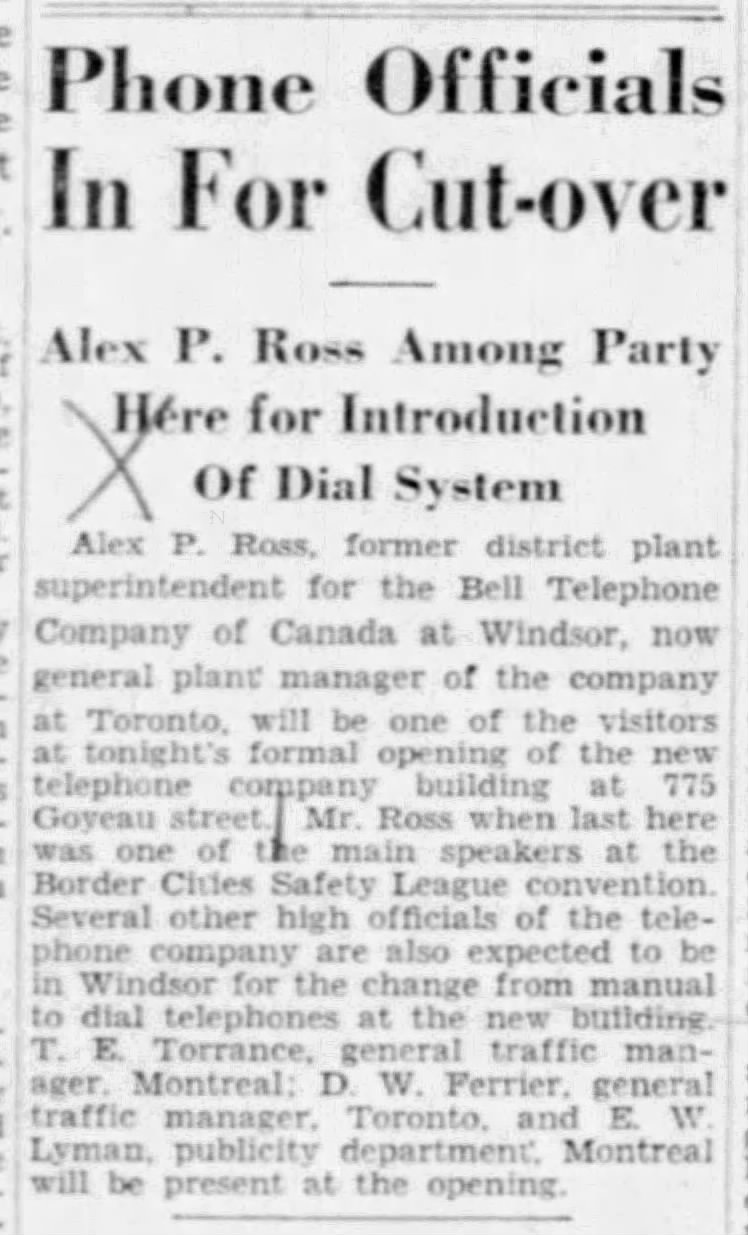Mr. Ross retired in 1945 after 47 years with the company. Because of his lifelong association with the telephone business, he was appointed an honorary lieutenant-colonel of A Corps Signals.