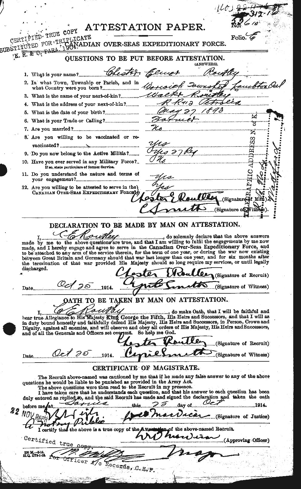 Routley, Chester Elmer 53610 attestation page 1