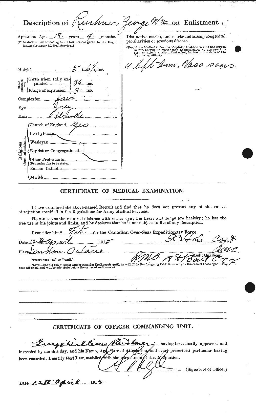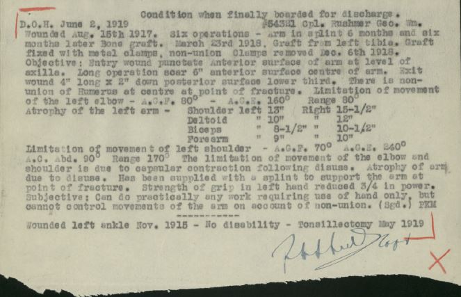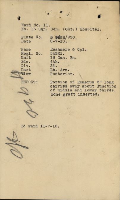 Source: October 1915 Medical Officer’s War Diary. Accidentally shot self on October 1, 1915. War Diary has name spelled at Rushmere.