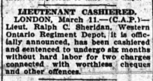 But, he wrote some bad cheques later in his service career and was convicted for this and cashiered, losing his position in the army and serving time.