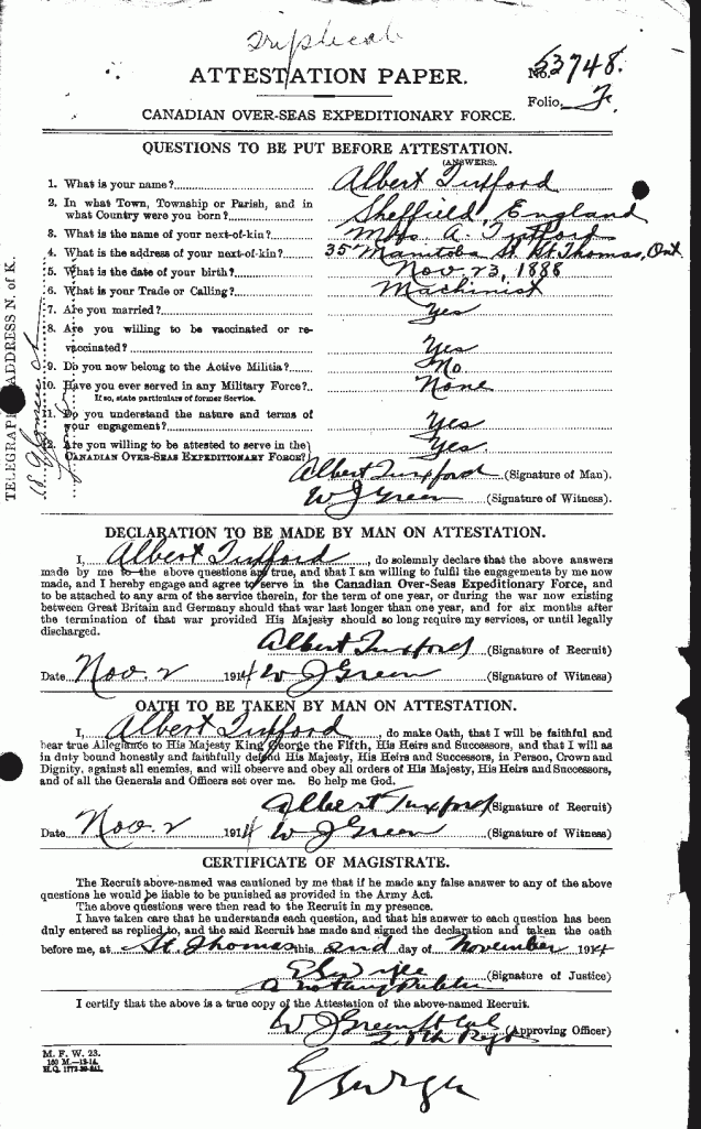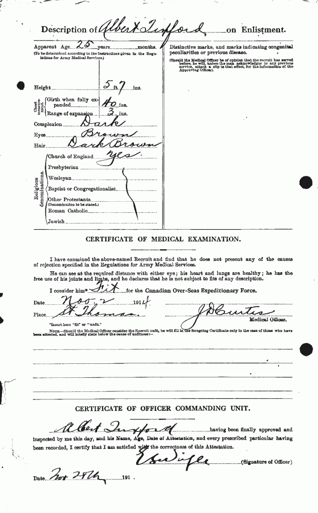 Tuxford, Albert: Service no. 53748 Digitized Service Record Source: Mentioned in Medical Officer’s war diary September 20, 1915. Find-A-Grave Family Search Share this: Click to email a link to a friend (Opens in new window) Email Click to share on Facebook (Opens in new window) Facebook Click to share on X (Opens in new window) X Click to share on Reddit (Opens in new window) Reddit Click to share on LinkedIn (Opens in new window) LinkedIn Click to print (Opens in new window) Print Click to share on Tumblr (Opens in new window) Tumblr Click to share on Pocket (Opens in new window) Pocket Click to share on Pinterest (Opens in new window) Pinterest Click to share on Telegram (Opens in new window) Telegram Click to share on WhatsApp (Opens in new window) WhatsApp Like Loading...