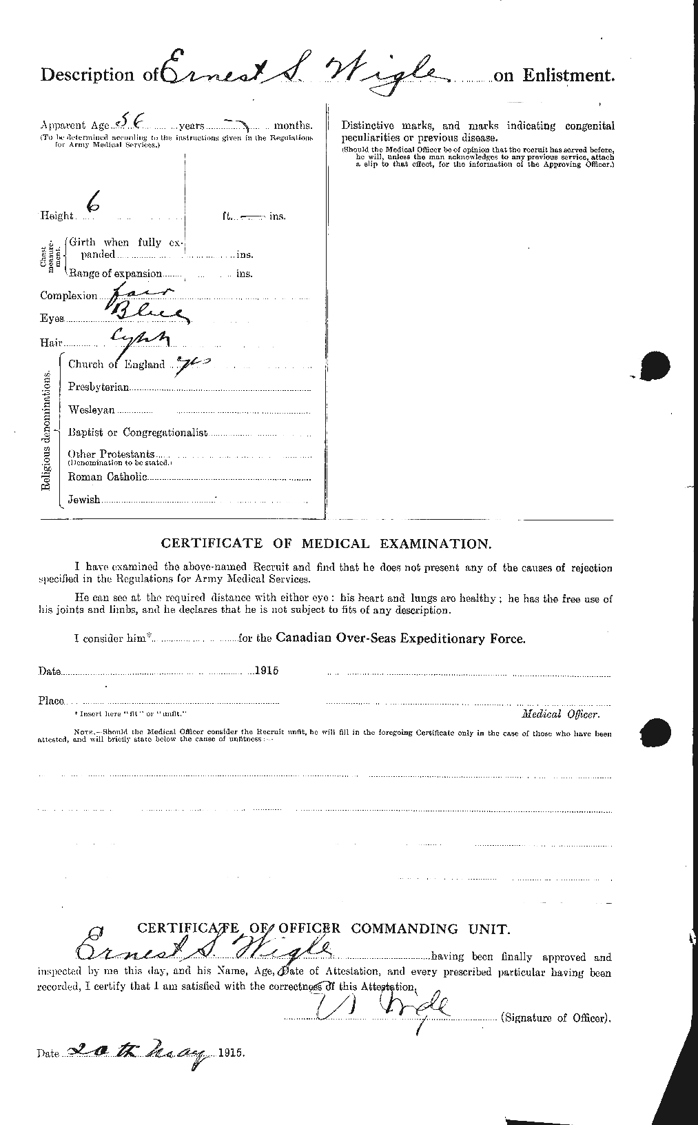 Lt. Col. E.S. Wigle was the first commanding officer of the 18th Battalion and served until shortly into June of 1916.