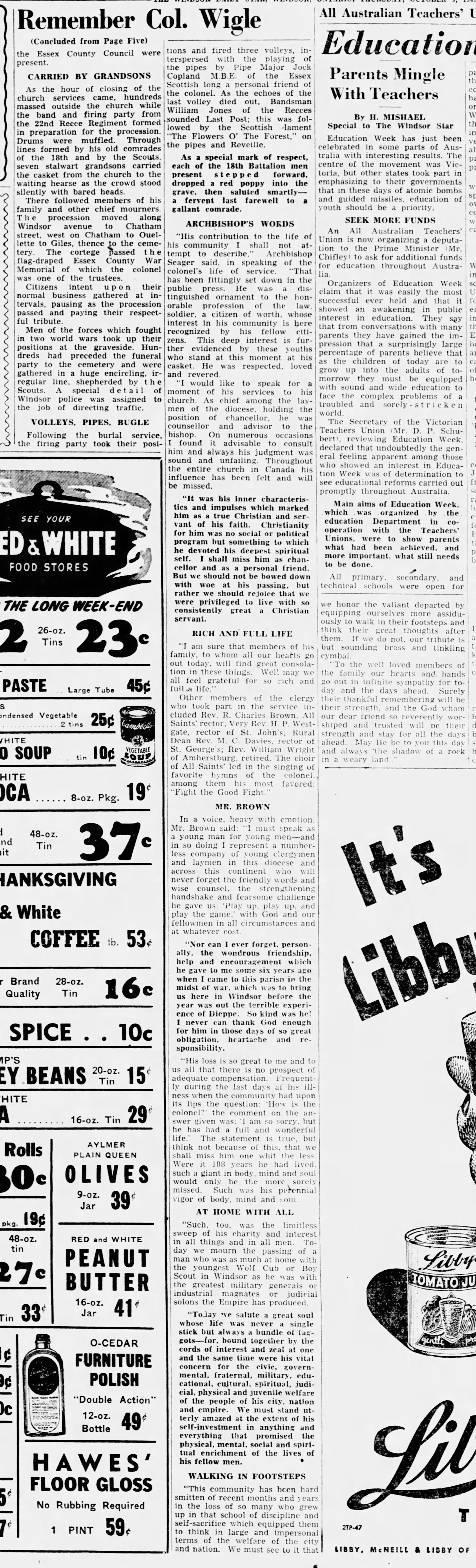 In religion the Colonel is an Anglican and has attained the highest office that a layman can hold in the Diocese of Huron, being appointed Chancellor of the Diocese by the late Archbishop Williams in May, 1931.